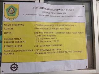 Cileungsi,Suata Rakyat Jabar News.com– Proyek vital renovasi ruang kelas belajar di Sekolah Dasar Negeri (SDN) Kp. Sawah 01 Cileungsi, Kabupaten Bogor, kini menuai sorotan tajam publik.